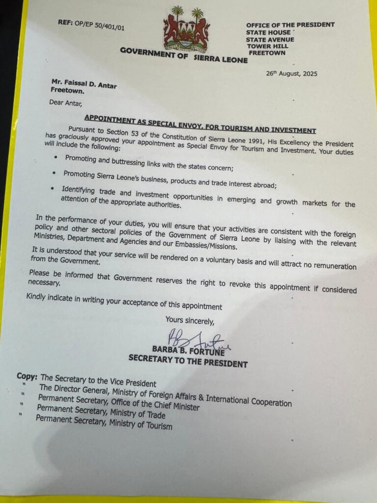 Koroma questioned whether these appointments genuinely serve the national interest, warning that such decisions could create perceptions of favoritism and nepotism. He further suggested that granting diplomatic privileges to individuals with close family ties to the administration may allow them to leverage these positions for personal business gains.
