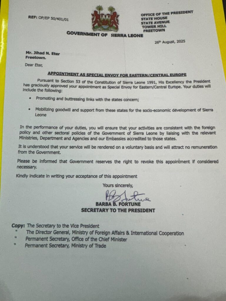 “The appointment of these four individuals risks turning public office into a tool for private enrichment,” Koroma stated. “Diplomatic positions should serve the country, not advance personal or family interests.”