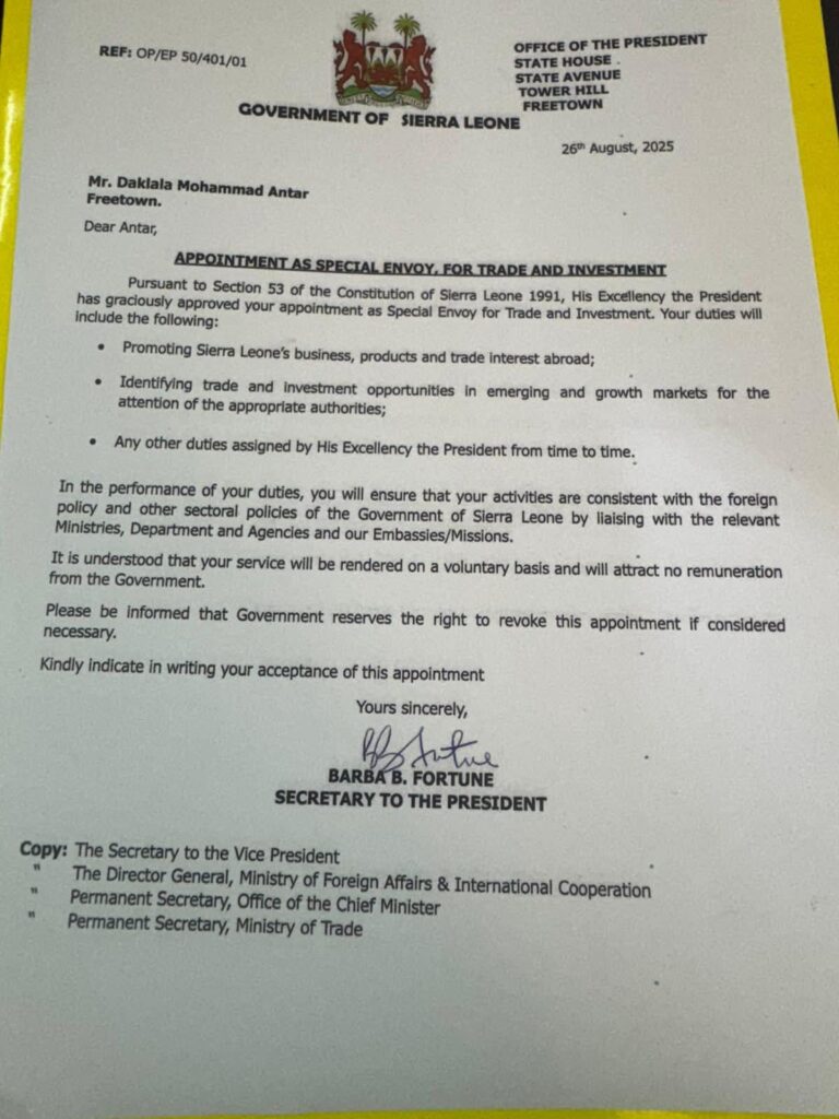 Member of the All-People’s Congress (APC) Communications Team, Minkailu Koroma, has voiced strong concerns over recent government appointments, specifically the selection of four members of the Antar family as presidential envoys.