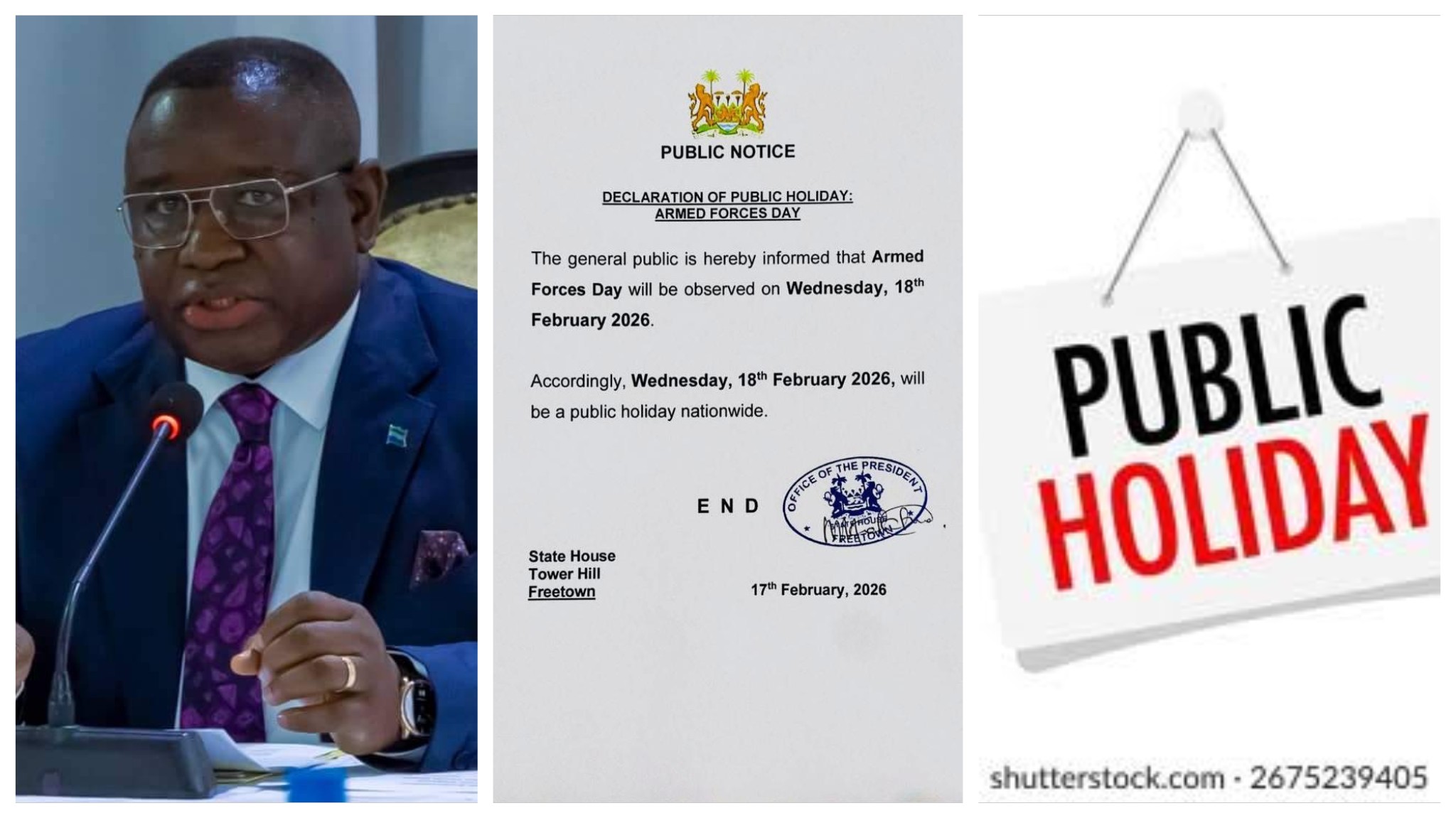 The Government of Sierra Leone has officially announced that Armed Forces Day will be observed as a public holiday nationwide. In a public notice issued today, authorities...