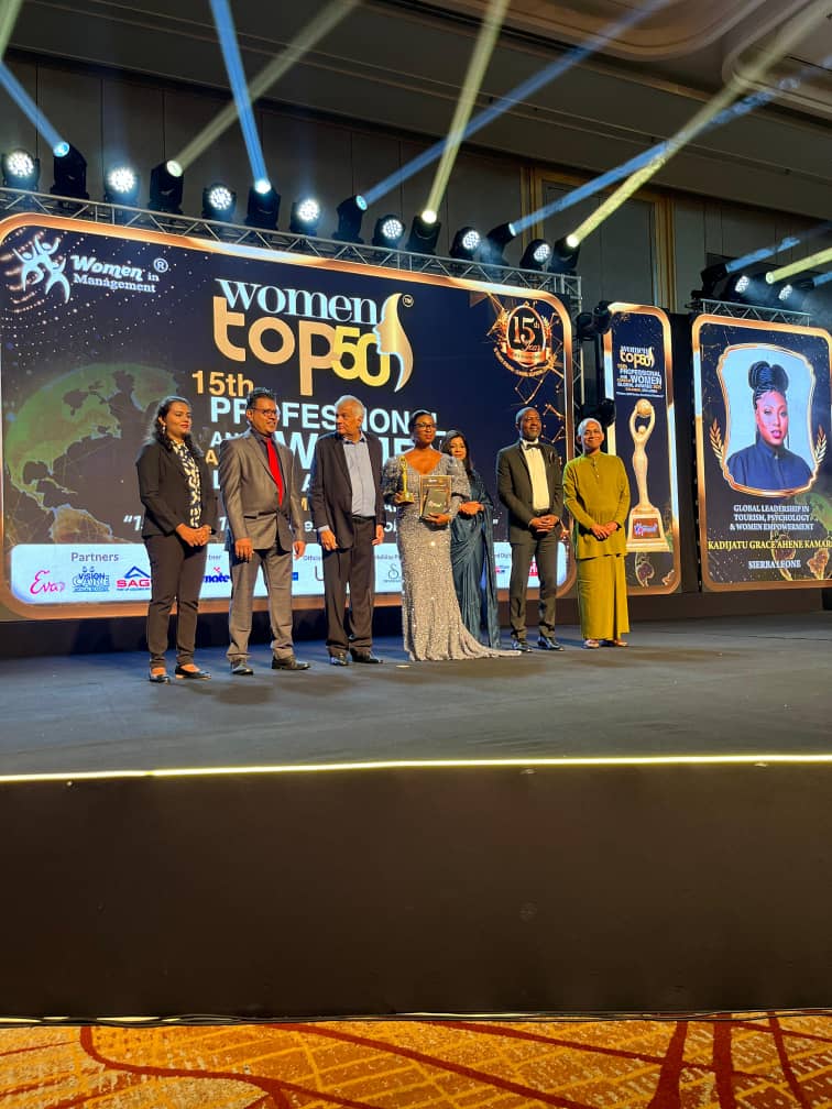 The Deputy Minister of Tourism and Cultural Affairs of Sierra Leone, Dr. Kadijatu Grace Kamara, has been honoured with a prestigious award at the 15th Professional and Career Women Global Awards held in Colombo, Sri Lanka.