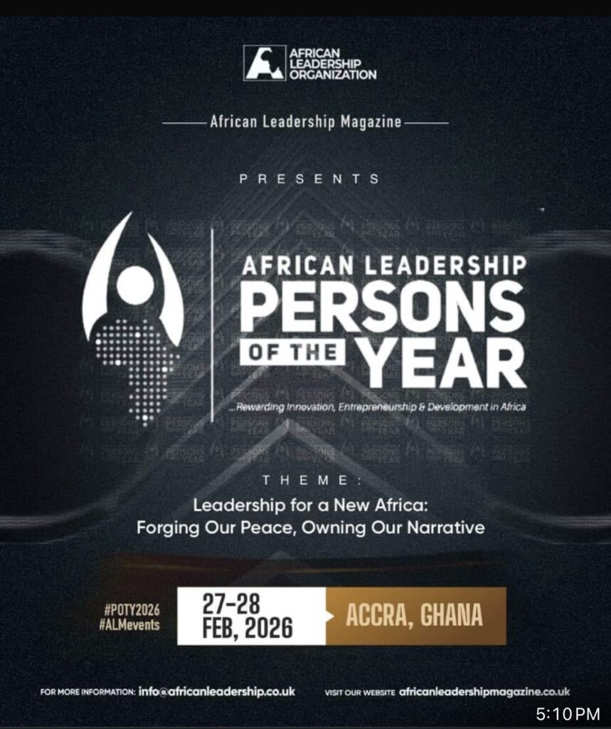 The award will be formally presented today, Saturday, 28th February 2026, by the President of Ghana, Nana Addo Dankwa Akufo-Addo, during a high-profile ceremony bringing together leaders and policymakers from across Africa.