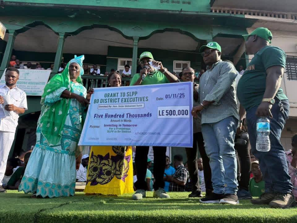 Former Speaker of the ECOWAS Parliament and current MP for Pujehun District, Rt. Hon. Dr. Mohamed Sidie Tunis, has donated NLe 500,000 (USD 25,000) to the SLPP Bo District Executives in Bo city.