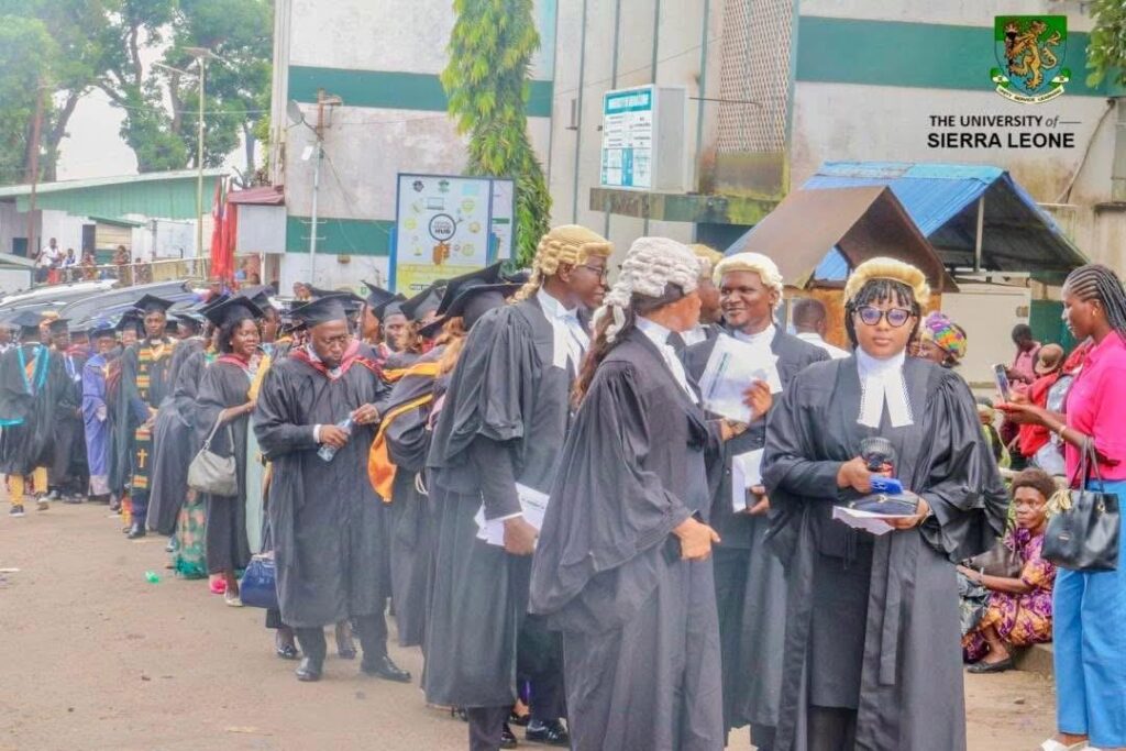 Addressing graduates, he urged them to embrace change, develop strong ethics, and use technology creatively. He encouraged them to turn Sierra Leone’s difficult job market into motivation for innovation and nation-building.