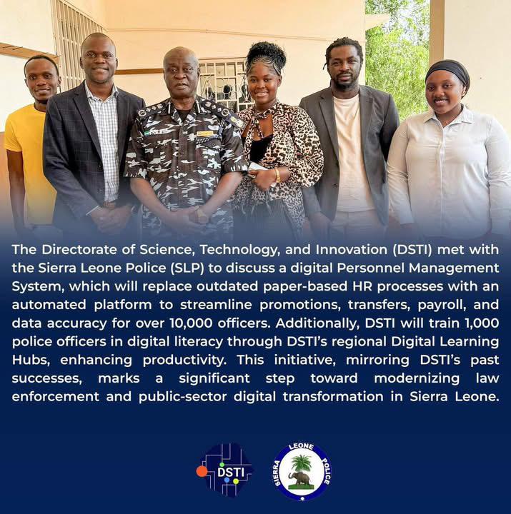 In a bold step toward modernizing law enforcement, the Directorate of Science, Technology, and Innovation (DSTI) met with the Inspector General of the Sierra Leone Police (SLP) to discuss a transformative digital initiative at their headquarters. DSTI has been commissioned by the Sierra Leone Police to digitize their Human Resource processes by the development of a Personnel Management System.