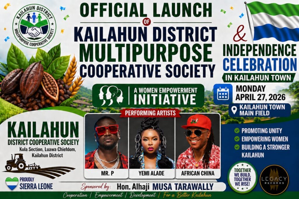 The event, scheduled for Monday, April 27, 2026, at the Kailahun Town Main Field, will feature high-profile performances from Mr. P of P-Square, alongside Yemi Alade and African China, among others. Their presence is expected to deliver a rare entertainment experience, particularly for residents in rural communities.