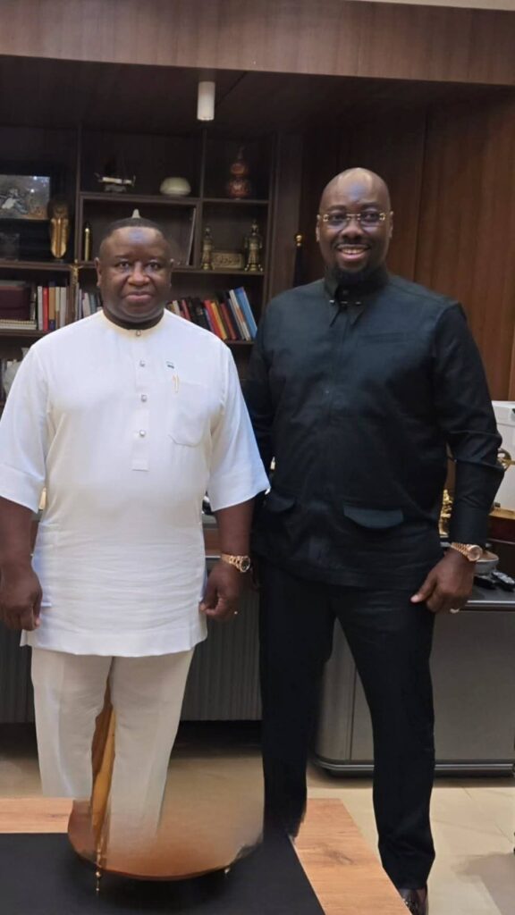 The high-profile meeting took place as part of Obi Cubana’s visit to Sierra Leone, where he was among the top personalities who jetted into the country to attend the grand unveiling of the prestigious nightlife venue.