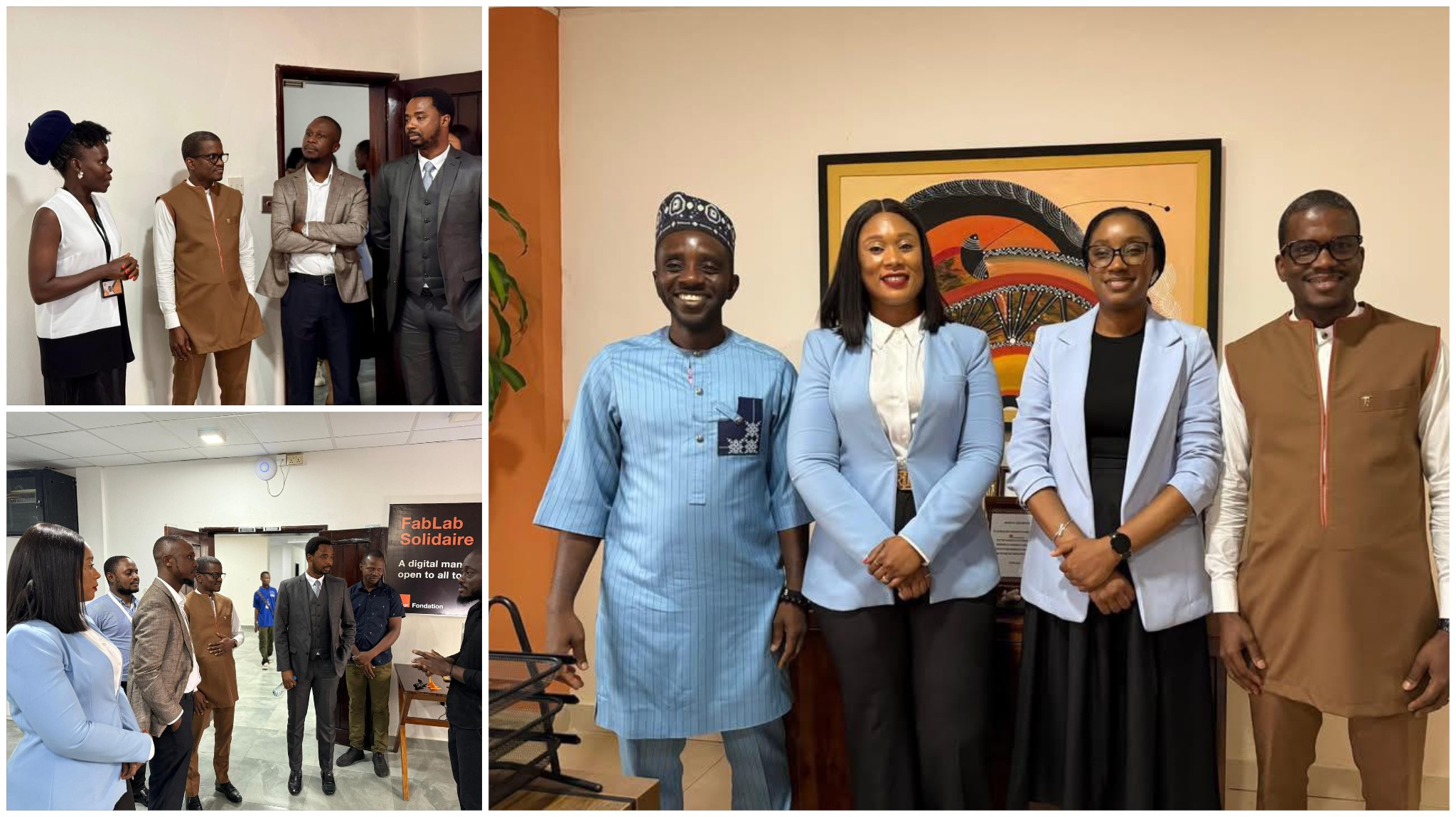 The Minister of Youth Affairs, Ibrahim Sannoh; the Minister of Information and Civic Education, Chernor Bah, and David Manley representing the Ministry of Communication, Technology and Innovation, joined the Director of Orange Sierra Leone Foundation, Annie Wonnie-Katta, the CEO of Orange Sierra Leone, Sekou Amadou Bah, and the General Secretary, Danetta Younge, on an official visit to the newly relocated Orange Digital Center (ODC).