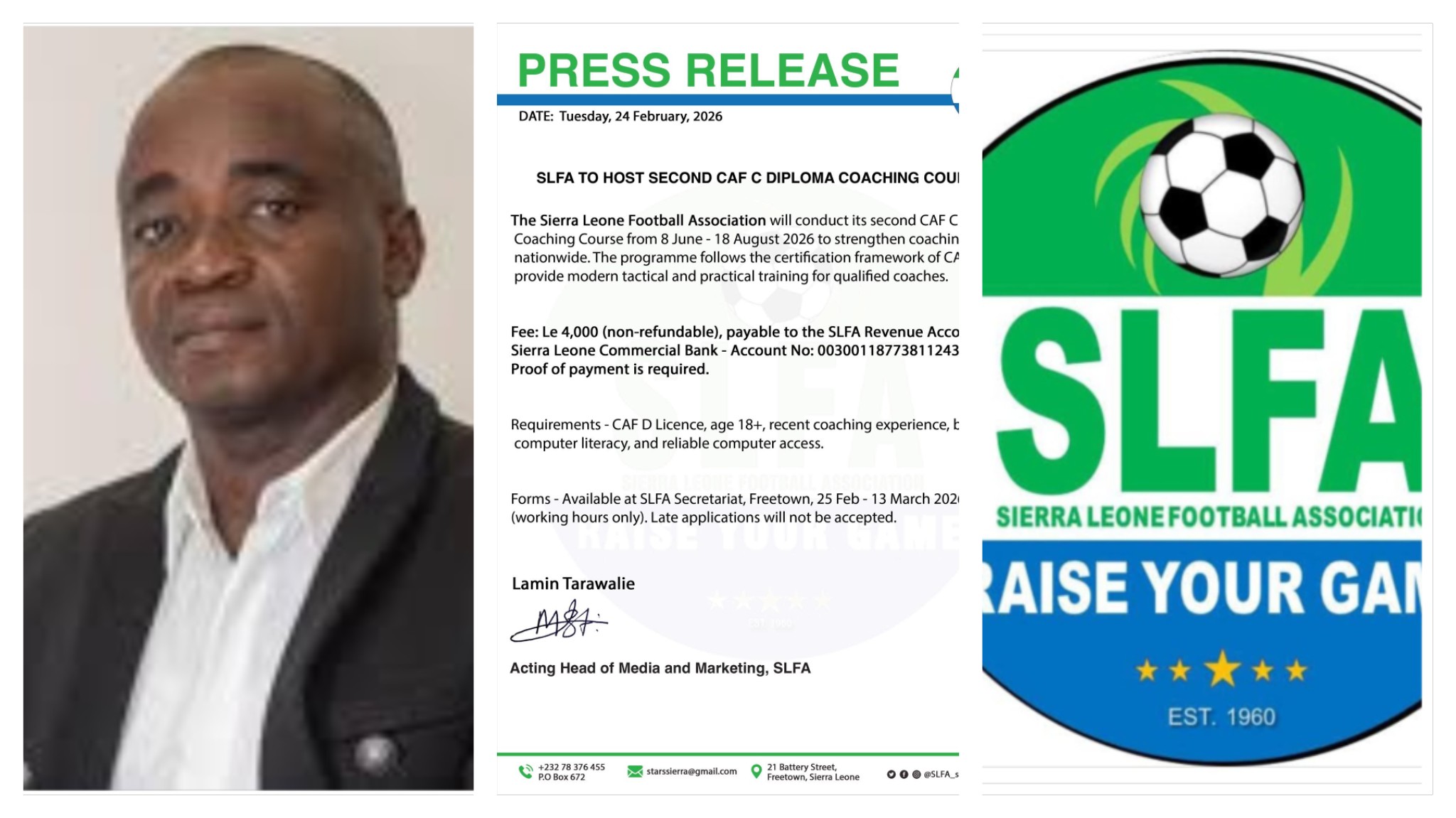 Alusine Kamara, was supported by Real Mack FC to complete his Coaching Certificate Training at the Sierra Leone Football Association.