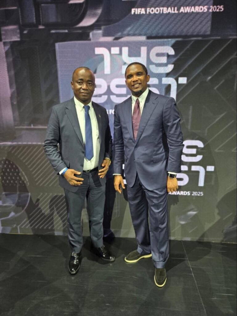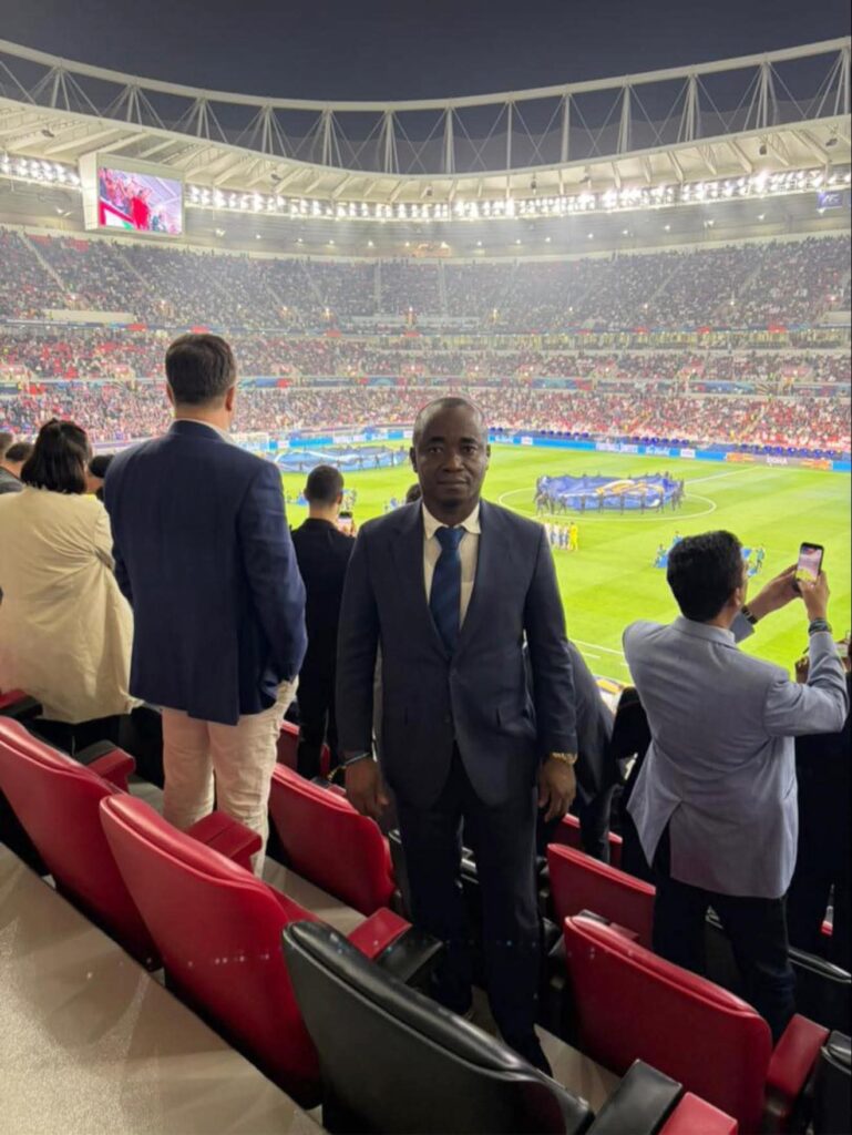 President of the Sierra Leone Football Association (SLFA), ๐๐š๐›๐š๐๐ข ๐Š๐š๐ฆ๐š๐ซ๐š, alongside SLFA Ex-Officio ๐Š๐ฐ๐ž๐ค๐ฎ ๐‹๐ข๐ฌ๐ค, today Wednesday, December 17, joined the global football family at the ๐…๐ˆ๐…๐€ ๐ˆ๐ง๐ญ๐ž๐ซ๐œ๐จ๐ง๐ญ๐ข๐ง๐ž๐ง๐ญ๐š๐ฅ ๐…๐ข๐ง๐š๐ฅ between ๐”๐„๐…๐€ ๐‚๐ก๐š๐ฆ๐ฉ๐ข๐จ๐ง๐ฌ ๐‹๐ž๐š๐ ๐ฎ๐ž ๐ฐ๐ข๐ง๐ง๐ž๐ซ๐ฌ ๐๐š๐ซ๐ข๐ฌ ๐’๐š๐ข๐ง๐ญ-๐†๐ž๐ซ๐ฆ๐š๐ข๐ง and ๐‚๐จ๐ฉ๐š ๐‹๐ข๐›๐ž๐ซ๐ญ๐š๐๐จ๐ซ๐ž๐ฌ ๐œ๐ก๐š๐ฆ๐ฉ๐ข๐จ๐ง๐ฌ ๐…๐ฅ๐š๐ฆ๐ž๐ง๐ ๐จ at the iconic ๐€๐ก๐ฆ๐š๐ ๐›๐ข๐ง ๐€๐ฅ๐ข ๐’๐ญ๐š๐๐ข๐ฎ๐ฆ in Doha, Qatar.