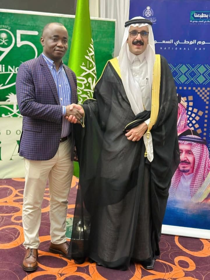 Excellency Babadi Kamara, President of the Sierra Leone Football Association (SLFA), attended the 95th National Day celebration of the Kingdom of Saudi Arabia at the Radisson Blu Mammy Yoko Hotel in Aberdeen. He was present at the special invitation of the Saudi Ambassador, His Excellency Ali Ibrahim A. Alheji.
