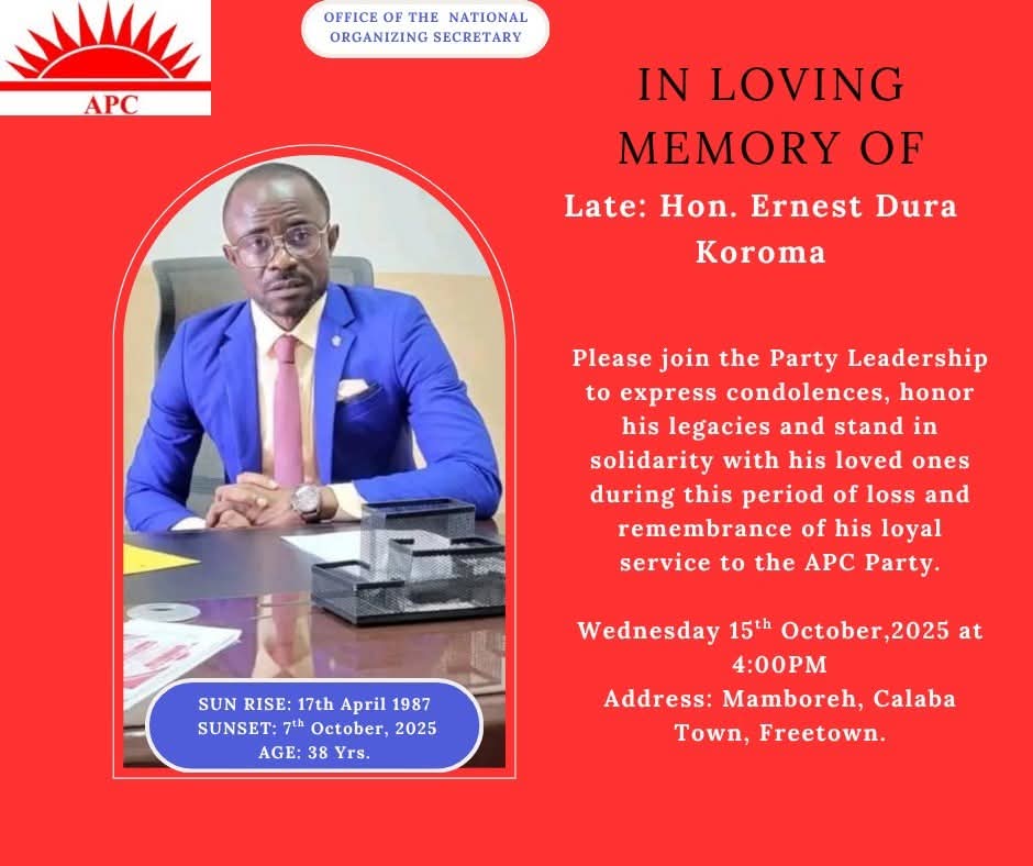 The family of the late Honourable Ernest Dura Koroma, former Member of Parliament for Kambia District, in collaboration with the All People’s Congress (APC) Party and the...