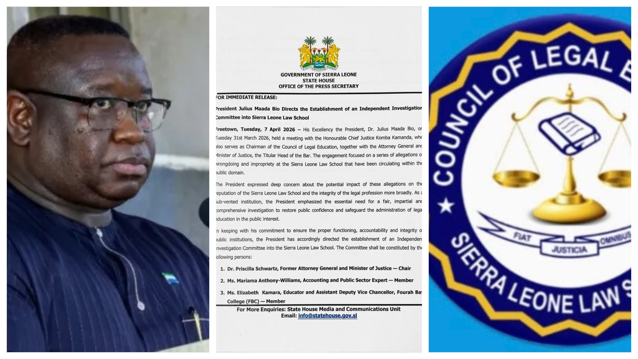 President Julius Maada Bio has directed the establishment of an independent investigation committee to examine allegations of wrongdoing and impropriety at the Sierra Leone Law School. The...