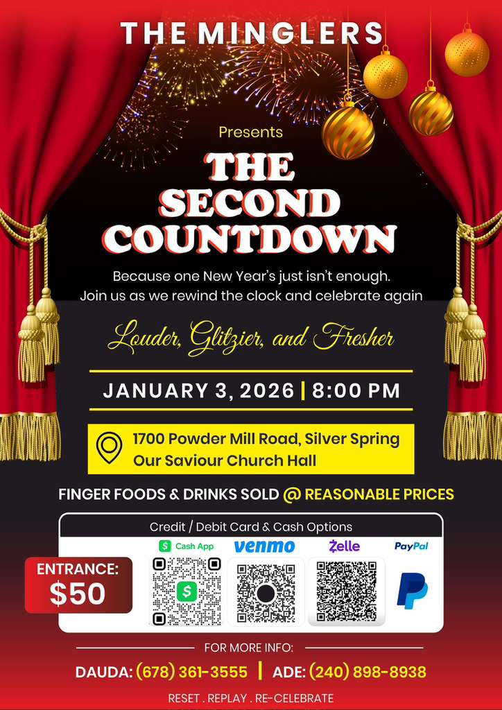 The Minglers are set to host an exciting post-New Year celebration dubbed “The Second Countdown” on January 3, 2026, at Our Saviour Church Hall, located at 1700 Powder Mill Road, Silver Spring, beginning at 8:00 p.m.